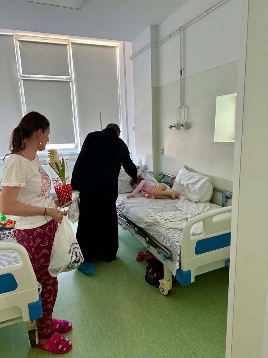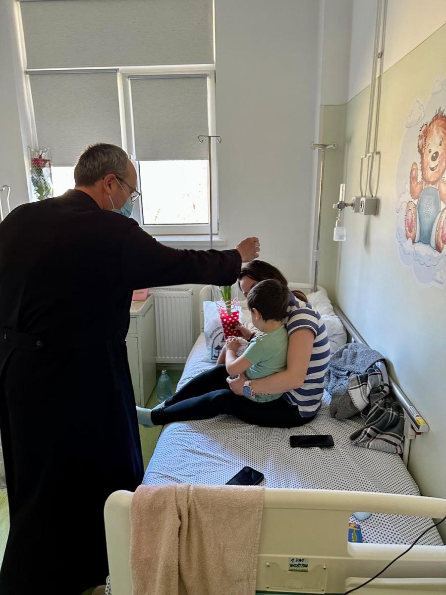 Preoți din Bacău aduc bucurie de 8 Martie mamelor și copiilor internați la Pediatrie