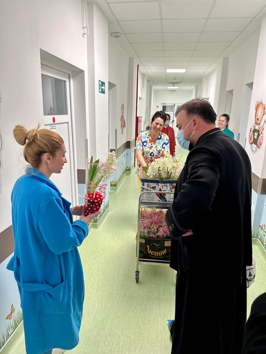 Cu acest prilej, sfinții părinți au oferit pachete cu produse de îngrijire și icoane mamelor internate alături de copiii lor, dar și flori și mărțișoare tuturor angajatelor secției.
